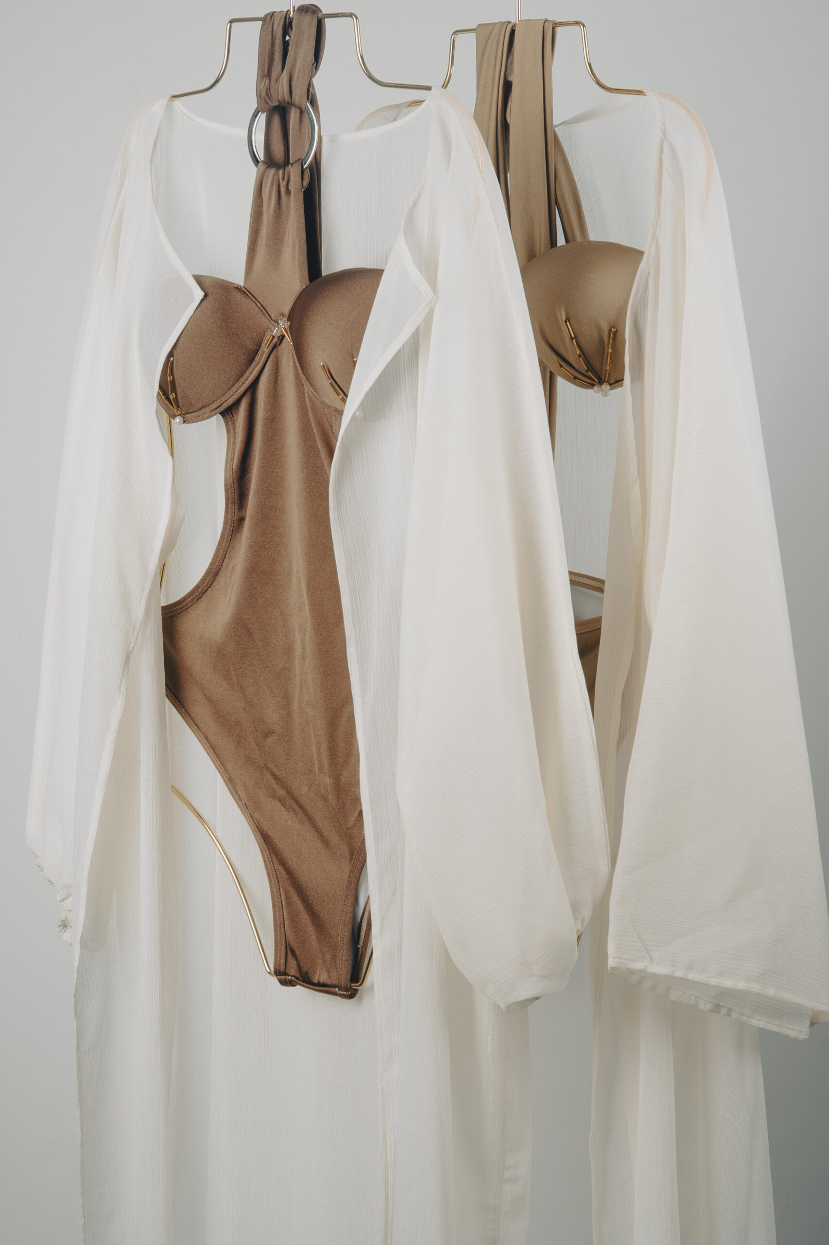 Es la fusión perfecta entre el glamur clásico del océano y la sofisticación contemporánea. Inspirada en la belleza natural de las perlas y las ostras, esta colección reinterpreta el traje de baño de una pieza, llevándolo a un nivel de lujo y distinción.
